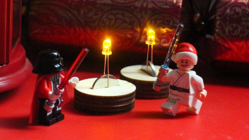 Add mood lighting to any room with these flickering LED tea lights made using our own Yellow Flickering Candle LEDs. LED tea lights are an ideal alternative to lit candles thanks to being much safer than a lit flame. The LED gives out a random flickering effect at a steady current. This tutorial shows you how to make a Christmas themed tea light using our laser cutter template.