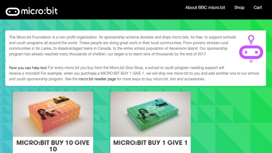 This week the Micro:bit Foundation launched the micro:bit Give Shop – a way you can help change the lives of disadvantaged children around the world by helping them learn to code and invent with the micro:bit.