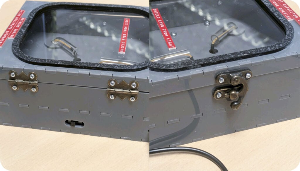 A note before we begin: we used the hinges and clasp from one of our wine boxes for the enclosure, so we recommend measuring the hardware you select and adjusting the screw holes to fit.