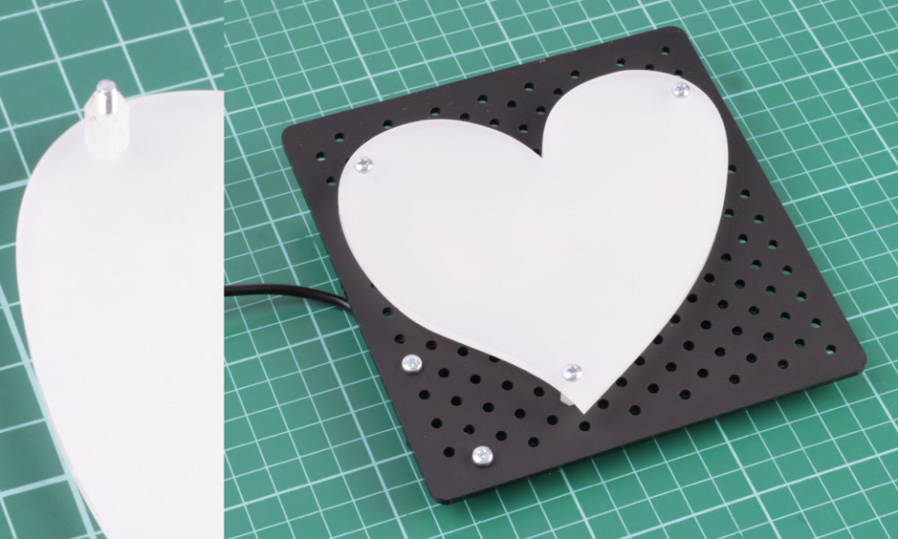 While we find it best to make the pegboard from a black material (we used the matte black Value Acrylic) you can experiment with the colour and finish of both that and the diffuser. Our make’s diffuser is made from red Fluorescent PERSPEX®
