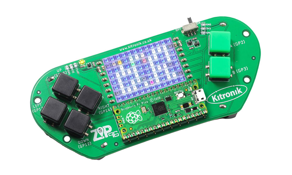 The Kitronik ZIP96 is a fully programmable feature-packed retro-styled handheld gaming solution for the Raspberry Pi Pico. It offers the new coder an inspiring environment on which to learn and it offers everyone a fun way to get to grips using microcontrollers.