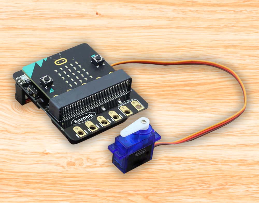 The A button will make the servo move through 90 degrees, or half way through its full range of motion and pressing the B button will reset the servo to its staring position. Try experimenting with different A values between 0 and 180.