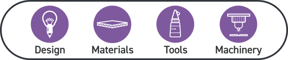 All parts of this make are cut from one material – we’ve used Finnboard, but you can use any 3mm thick material of your choice.