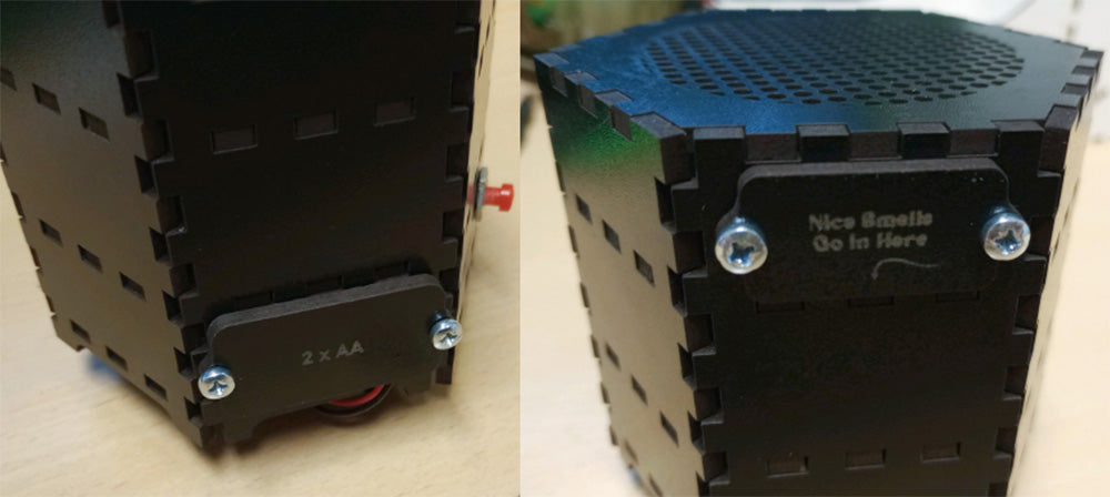 The topmost panel will allow access to the compartment where the scent-carrying material is placed, and the lower panel will allow access to the PCB and battery box. You’re Finished!