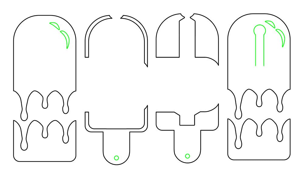 Cut out the DXF! Above is the DXF as a diagram to show you what you need to cut from which material.