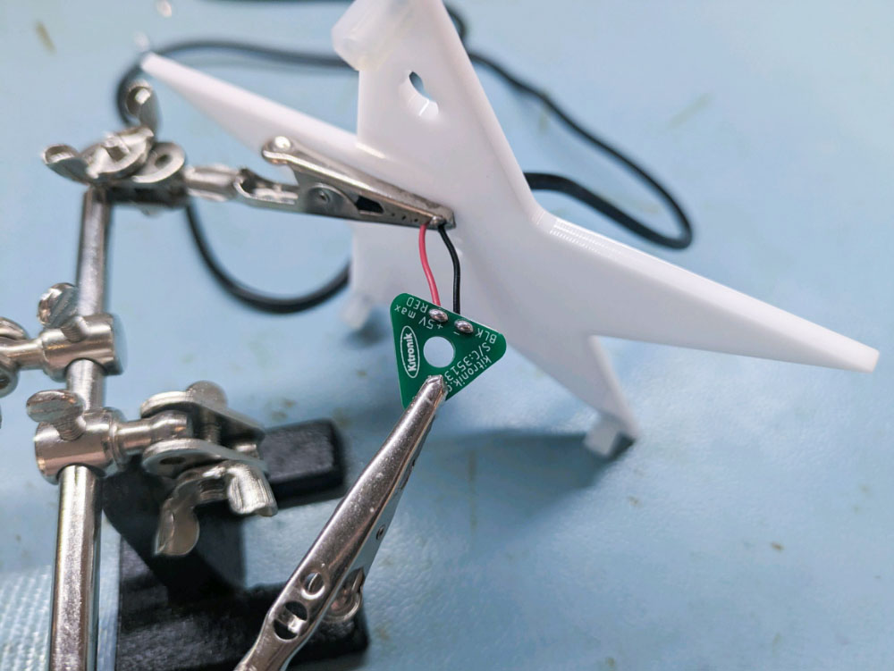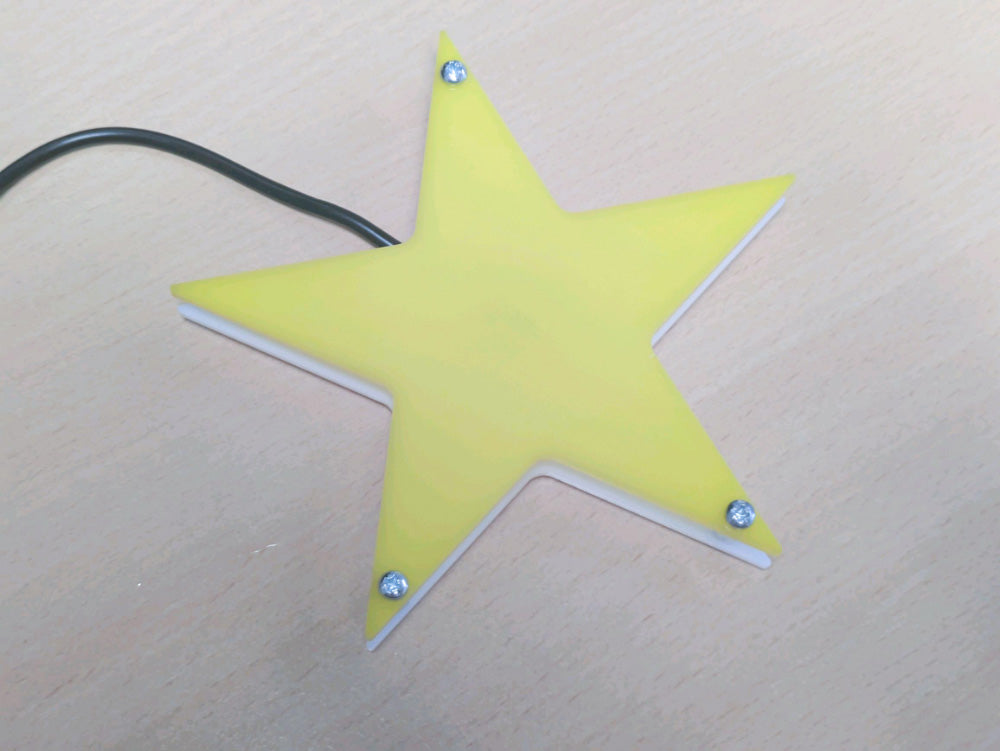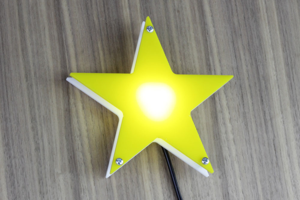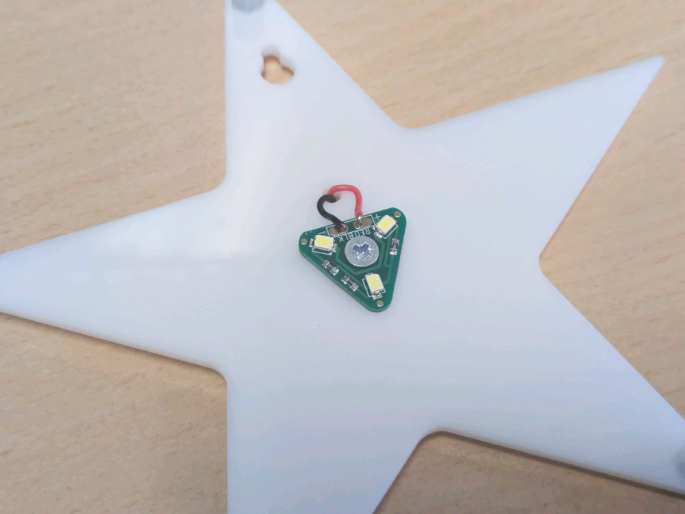 Using a single 8mm M3 countersunk screw and an M3 hex nut, attach the lighting module to the star using the Mounting hole and the hole at the centre of the star. The image below shows how it will look.