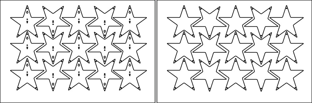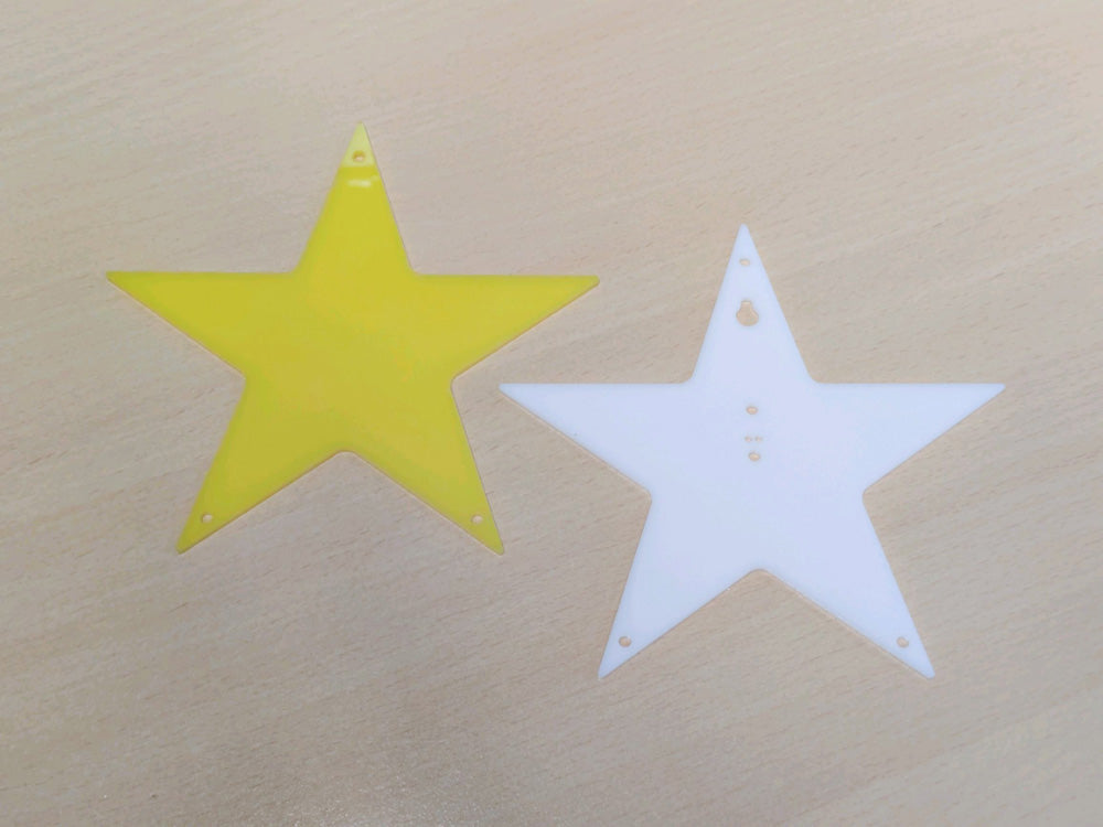 We’ve designed an enclosure that resembles a simple star shape, which is formed from two star-shaped panels. The back panel is shown below on the left, and the front Panel is on the right. They are tessellated 15 to a sheet.