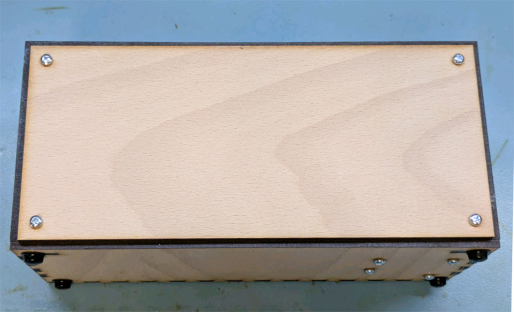 As you can see in the image below – you can now screw on the back panel using four 6mm M3 pan head screws. we’ve added feet to ours – you can make your own from foam or grab some rubber ones like we did!