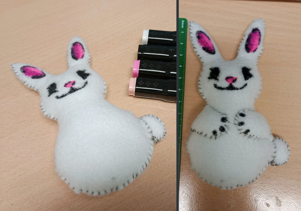 Colour in the Rabbit’s face with Markers, and then sew on the arms and tail. Stuff these too for a 3-dimensional effect!