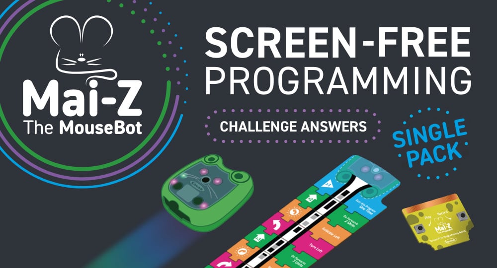Hello, and welcome! We hope you’re enjoying coding Mai-Z The MouseBot using the screen-free instruction blocks, and are ready to check your answers to the challenges!
