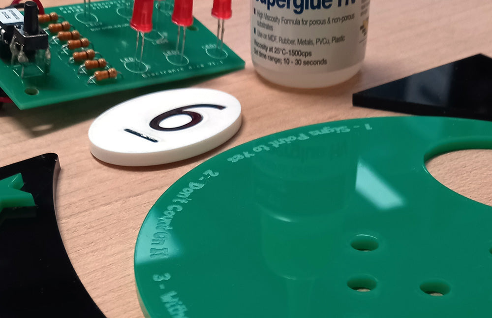 Forget the Magic 8 Ball, the new Kitronik Magic 6 Ball is where it’s at! Using the Kitronik Dice Project Kit and some Value Acrylic, you too can create a fun randomiser with life advice. Download the dxf zip file and follow, our in-house animator/designer, Kev’s instructions.