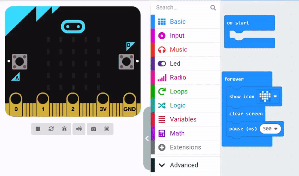 If your students require a slightly harder challenge, maybe have them create a variable for the pause amount and use the A & B buttons to increase and decrease the value. An example of this can be seen below, mouseover the image to reveal the solution: