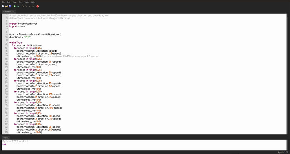 Whenever we develop anything new we are always looking to simplify their use with resources as much as possible. Our motor driver boards for Raspberry Pi Pico are no exception. To that end we’ve produced two repositories on GitHub that contain MicroPython example code and other useful information. See below for more details;