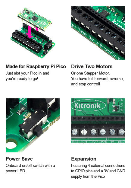 - 1 x Kitronik Compact Motor Driver Board for Raspberry Pi Pico.