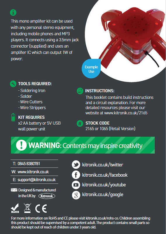 Be the first to review “Kitronik Retail Pack – Mono Amplifier Kit V3”