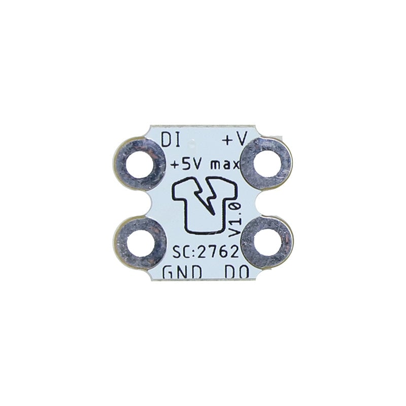 - It features four connection pads; +V, GND, Data in, and Data out.