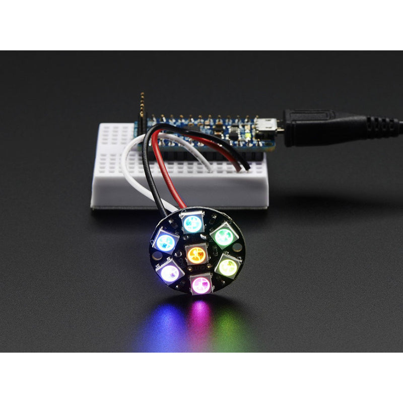 Comes as a single NeoPixel Jewel with 7 individually addressable RGB LEDs assembled and tested.
