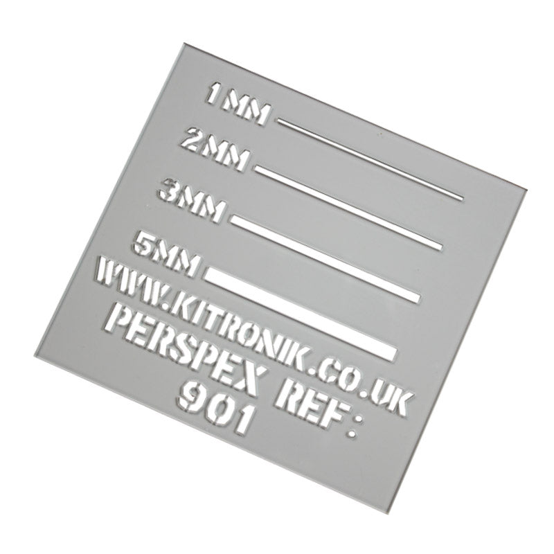 This is a sample ouf our transparent 3mm Neutral (grey) Perspex Acrylic Sheet measuring 98mm x 98mm. This offers a perfect way of checking the suitability of a material without having to buy a complete sheet first. Check the finish of the material and get the perfect settings for your laser without having to practice on a full-sized/priced sheet.