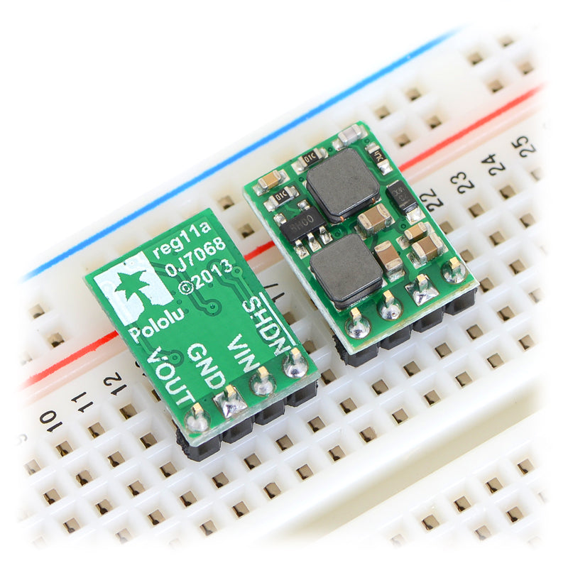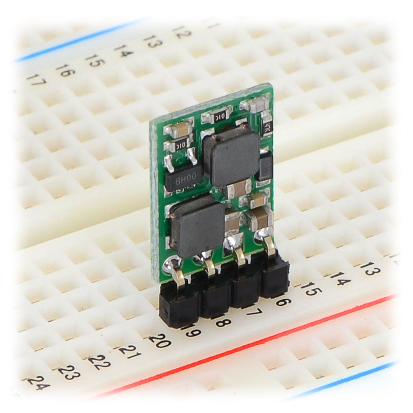 This step-up/step-down voltage regulator S10V4F5 is a switching regulator (also called a switched-mode power supply (SMPS) or DC-to-DC converter) with a single-ended primary-inductor converter (SEPIC) topology. It takes an input voltage from 2.5V to 18V and increases or decreases the voltage to a fixed 5V output with a typical efficiency of 70% to 80%.
