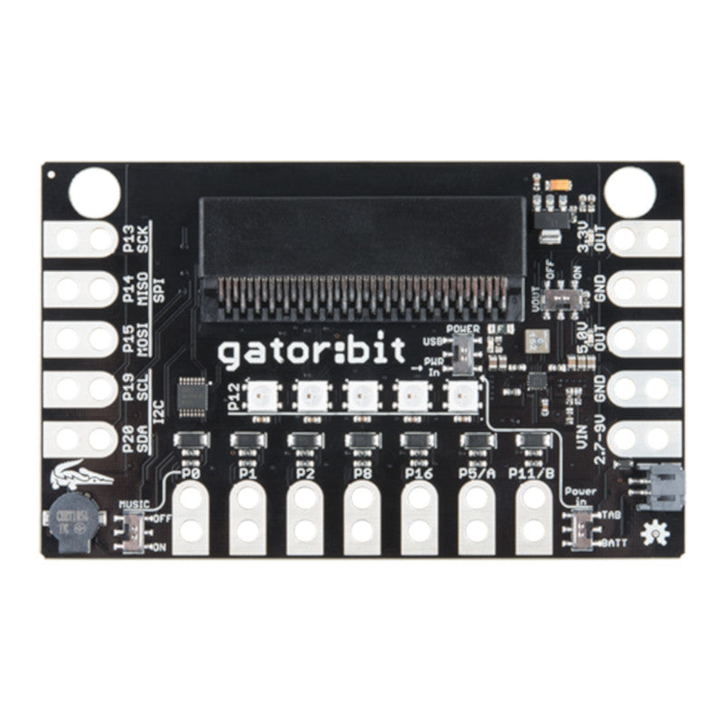 Even without any external hardware the gator:bit is still an exploratory development board for micro:bit allowing the easiest access to it for educators, beginners, and pro-makers alike.