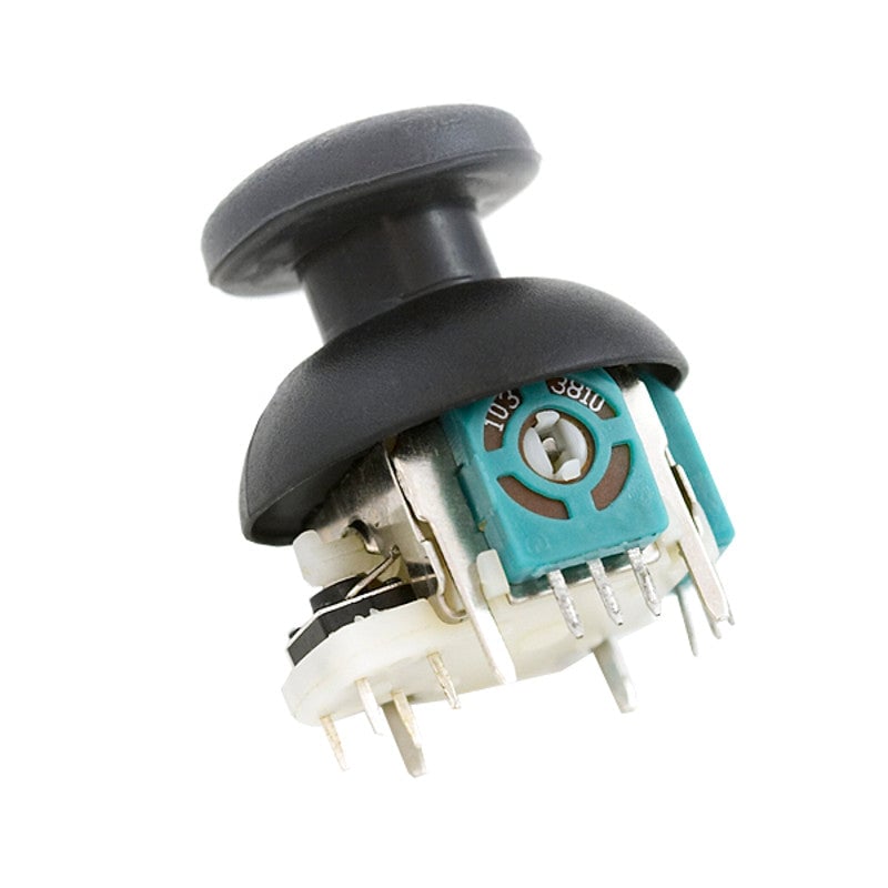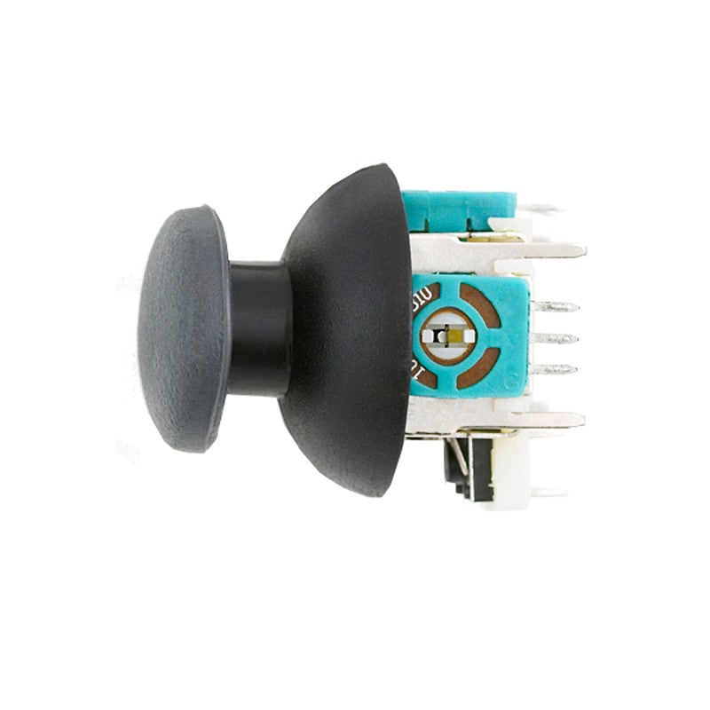 This is a joystick very similar to the joysticks on PS2 (PlayStation 2) controllers. Directional movements are simply two potentiometers – one for each axis. Pots are ~10k each.