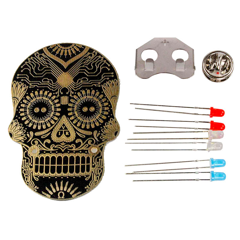 This is the black version of the Geeky take on Dia de los Muertos, the The Day of the Geek soldering badge kit.