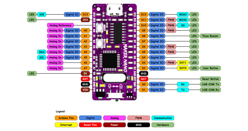 - Maker Nano Pinout Diagram.