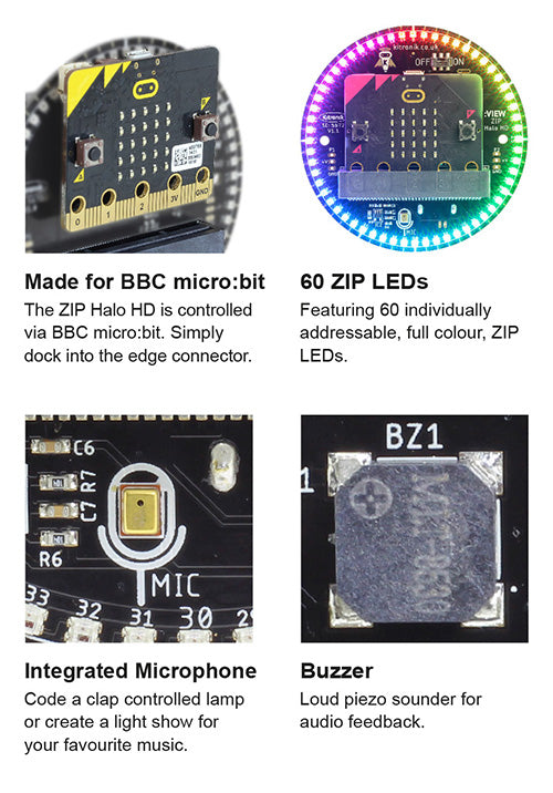 - The ZIP Halo HD can also be controlled with MicroPython, code examples for each of the boards features can be found on GitHub here.