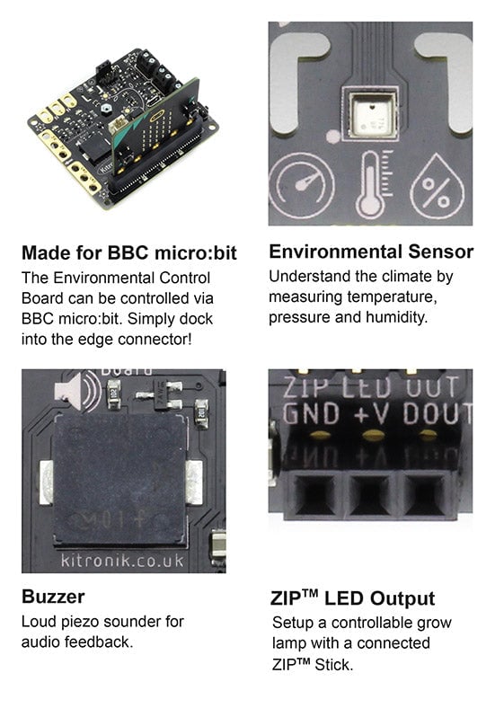 - This board is also available as part of the Kitronik Smart Greenhouse Kit.