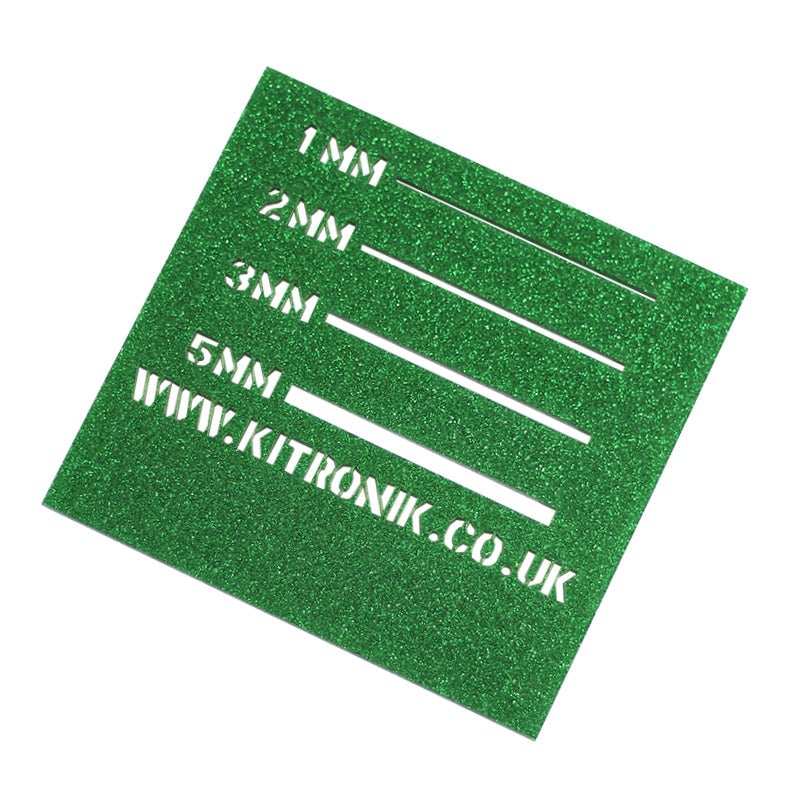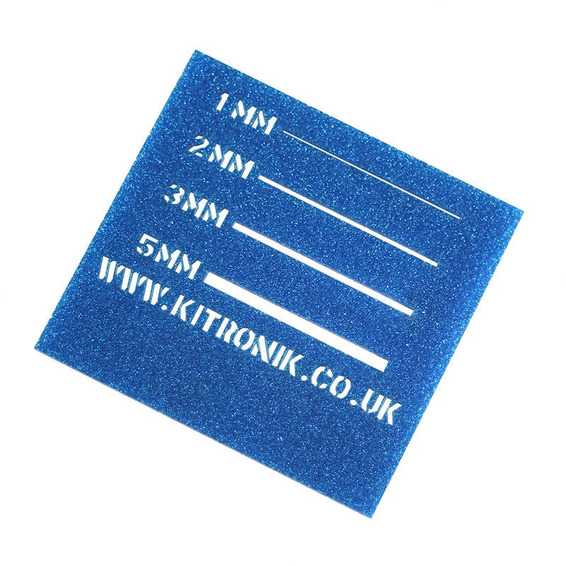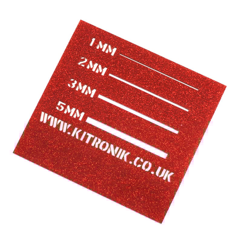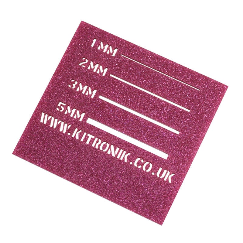 Try a sample of our 3mm cast glitter acrylic sheets, measuring 98mm x 98mm. This offers a perfect way of checking the suitability of a material without having to buy a complete sheet first. Check the finish of the material and get the perfect settings for your laser without having to practice on a full-sized/priced sheet.