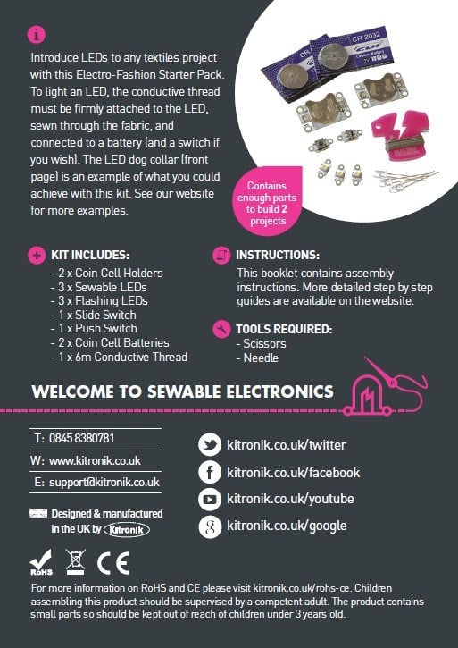 - Enough Electro-Fashion components to get started immediately with E-Textiles.