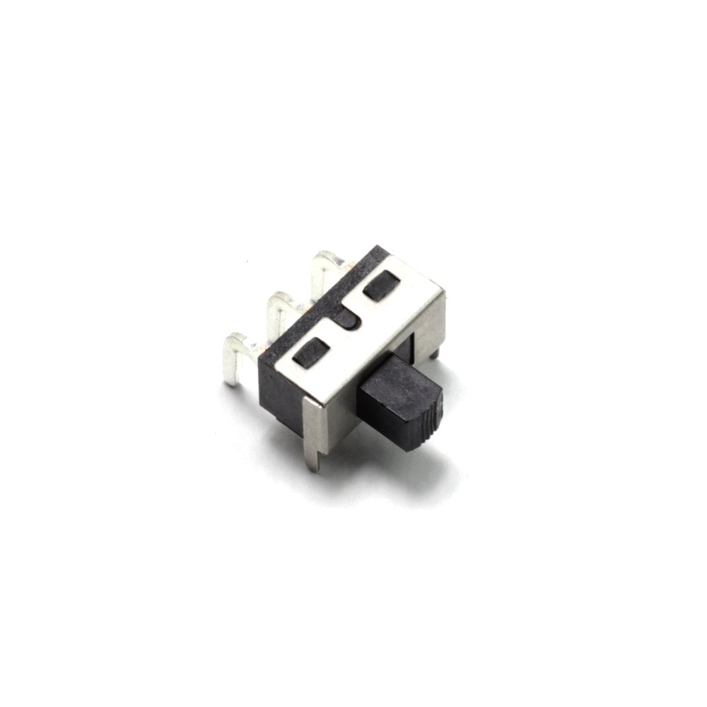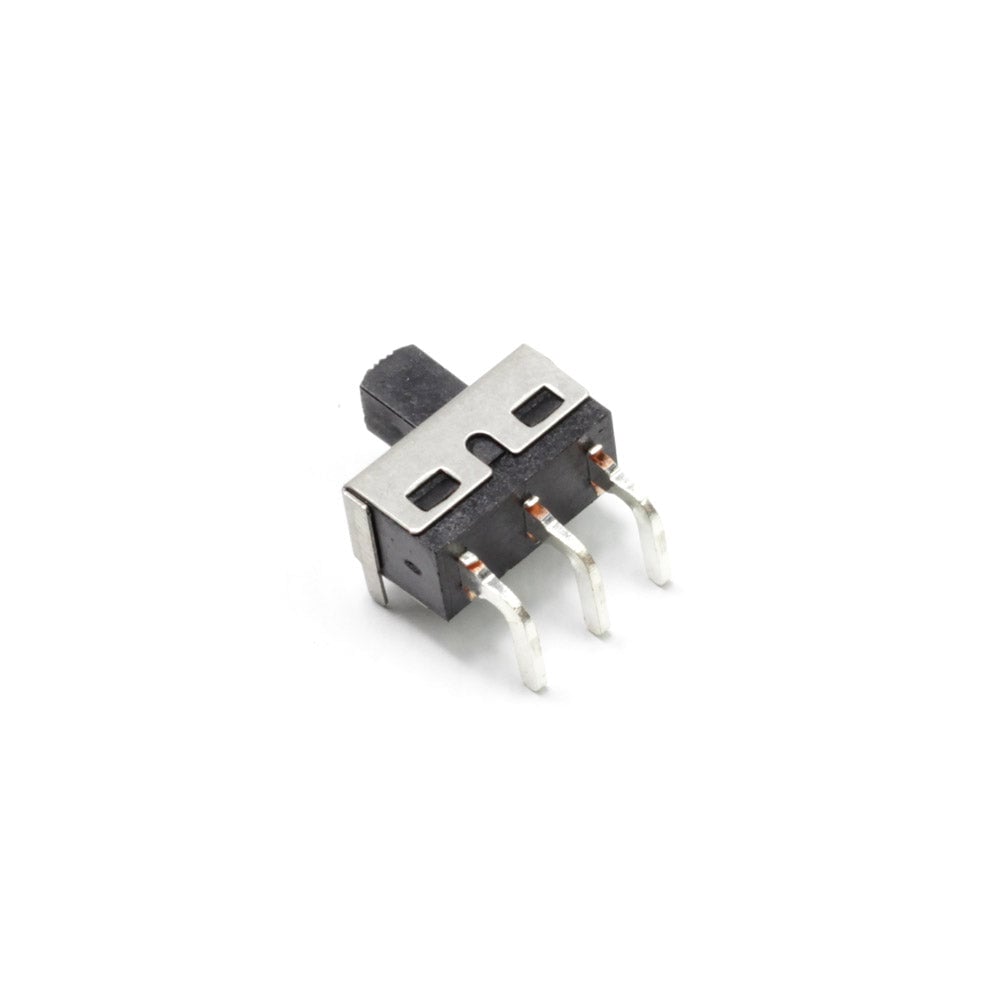 Right angle PCB mounting slide switch. SPDT contacts. Supplied as a pack of 10.