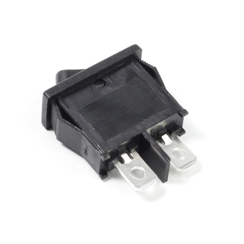 SPST rocker switch black, rectangular, snap fit.